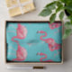 Pink flamingo birds on turquoise background tissue paper