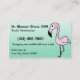 Perfect for the zoologist, exotic veterinarian, or anyone who just loves flamingos! A kawaii cartoon of this tropical bird is on the right, with a teal green background. Cute and unique - certain to stick out in your customer's mind! Complete customization at your fingertips.