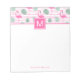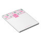 This personalized notepad features a watercolor flamingo design in shades of pinks and greens. Use the template form to add your personalization to the shape in the center and the line at the bottom.