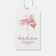 Add a tropical twist to your Christmas holiday themes with these pink flamingo Christmas gift tags! Featuring original watercolor art of a festive flamingo with a holiday wreath and the phrase "Merry Christmas" in elegant script, these tags are both fun and stylish.