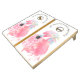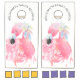 Tropical themed Cornhole game set, with beautiful artwork of a pink flamingo. Black arched text, on the top of the boards, is ready to personalize for your event. Great for all occasions.