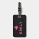 Pink Flamingo Custom text Black Paisley Luggage Tag