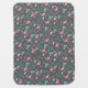 A baby blanket featuring a pink flamingo design, presented in grey color scheme. This blanket, perfect for infants, showcases a charming pink flamingo motif set against a calming and soothing grey background.
