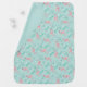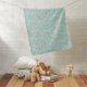 A baby blanket featuring a pink flamingo design, presented in a delightful turquoise color scheme. This blanket, perfect for infants, showcases a charming pink flamingo motif set against a calming and soothing turquoise background.