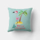 Pink Flamingo In A Santa Hat By A Palm Tree Throw Pillow
