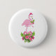 Pink Flamingo in Santa Hat Whimsical Christmas Button