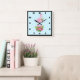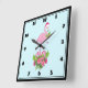 Pink Flamingo in Santa Hat Whimsical Christmas Square Wall Clock