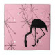 “Pink Flamingo Mid Century Modern” ceramic tile is for your space when you want it to feel brighter, happier, and more full of personality. The soft pink background, atomic starbursts, and bold flamingo silhouette give you that clean retro look that instantly adds charm without feeling heavy or cluttered. It works beautifully when you want your bathroom, patio, kitchen, bar area, or gallery wall to feel playful, stylish, nostalgic, and unmistakably yours.