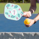 Pink flamingo mint green stripes palm leaves pickleball paddle
