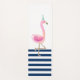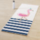 Pink Flamingo Navy Blue White Stripes Yoga Mat