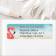 A coral-pink flamingo is set against the blue sea and sky of a bokeh style beach scene on our colorful change of address label. The text on the return address label currently says, "Here's my new address" along with a customizable section for revising your name and address." Matching postcard and postage.