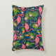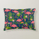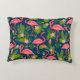Pink flamingo ornament on a striped turquoise back accent pillow