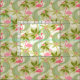 My original vector illustration of a variety of stylized tropical plants, hibiscus flowers, flamingos, and paisley shapes, in shades of pink, green, and light aqua, on antique white, with a subtle simulated fabric grain, to give the design the feeling of a vintage bark cloth.