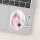 This contoured vinyl sticker features an oval image of a lovely pink flamingo rendered in soft pastel with green accents. There is also a bonus separate text sticker that is easy to personalize.