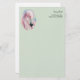 A lovely pink flamingo rendered in soft pastel with green accents embellishes this easy to personalize stationery with a tropical flair.