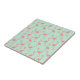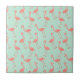 This is a drawing of a flamingo bird that was made into a pattern. The background is a pretty mint color.