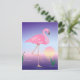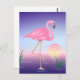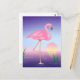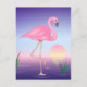 Pink Flamingo illustration. Bright pink bird is standing in water surrounded by plants.
