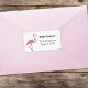 This design features a return address pink flamingo, a trendy stylish calligraphy script font, a modern calligraphy style text, a watercolor pink chic girly design, a tropical beach island bird wildlife, a pink girly chic feminine girl, a modern calligraphy script style, a whimsical typography modern script, a coastal living beach house, for island tropical return address label