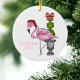 Pink Flamingo Santa Personalized Ceramic Ornament