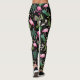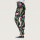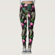 Pink Flamingo Tropical Botanical Black Background Leggings