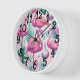 Pink Flamingo Tropical Design Clock