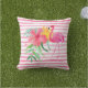 Pink Flamingo Tropical Flowers Outdoor Pillow