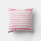 A bright pink flamingo and a tropical hibiscus flower arrangement are set against a fun background of watercolor pink and white stripes. The back of the throw pillow features the colorful pink stripes, without the tropical elements. If you prefer to use your pillow indoors, you can choose polyester or cotton fabric instead of outdoor fabric at checkout. A matching beach bag tote is also available.