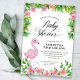 Pink Flamingo Tropical Flowers Script Baby Shower Invitation