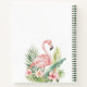 A stylish white background decorated with a pink flamingo and tropical flowers and foliage. Personalize and add a name and your monogram initials.