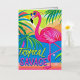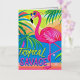 Pink flamingo Tropical standing on one leg Foil Greeting Card