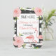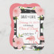 Charm your guests with this editable adorable Save the Date print, a delightful blend of whimsy and elegance. The design features a playful arrangement of whimsical pink flamingos and vibrant flowers set against a backdrop of lively, messy black and white stripes. This Save the Date card exudes a sense of joyful celebration, perfect for announcing your upcoming special day.