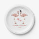Pink Flamingo Wedding Bride Groom Hearts Love Paper Plates