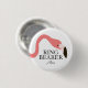 A whimsical button for the Ring Bearer, this design features a pink flamingo with its long, curly neck over your custom text. Insert the Ring Bearer's name in place of the sample name shown in the design template. All the text on this button may be customized to your preference. This button makes a great choice for the wedding rehearsal dinner and other events leading up to and surrounding your wedding. It makes a fun keepsake or wedding favor as well.