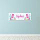 A gallery canvas print with a cute illustration of a pink flamingo with some watermelons and pineapples. Pink and green color scheme. Summery and tropical.