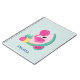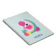 Personalized notebook with a cute illustration of a pink flamingo with some watermelons and pineapples. Pink and green color scheme. Summery and tropical.