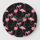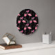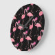 Pink Flamingos: Black Background Vintage Large Clock
