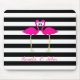 Pink Flamingos, Black, White Stripes Personalized Mouse Pad