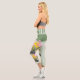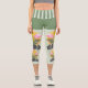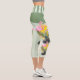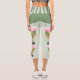 Flamingos and sunshine make up this design for colorful Capri leggings.