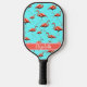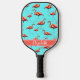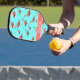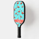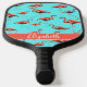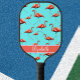 This stylish pickleball paddle features a cute pink flamingos design on an aqua background with a custom name on the base. A classic pattern with white text, you can edit the name to personalize it by using the editing tool in the listing. It's a fun, feminine, and classy gift for a pickleball player.