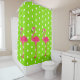 Pink Flamingos on Green and White Polka Dots Shower Curtain