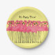 Beautiful flock of pink flamingo tropical birds party paper plates in a trendy pink and yellow bold design with text you can personalize to suit your party theme that says It's Party Time. Designed for a pool party, beach party, or tropical themed house party that adds a touch of style to your gathering.