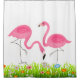 Pink Flamingos & Spring Grass & Flowers Shower Curtain