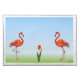 Pink Flamingos & Tulip Flower on Light Blue Placemat.