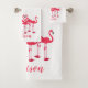 Whimsical name personalized gaggle of pink flamingos towel set. If you need assistance with placement or customizing, please use the "Contact This Designer" link on the right hand side of this page.