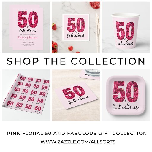 Pink Floral 50 and Fabulous 50th Birthday Party Napkins
