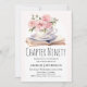 Pink Floral 90th Book Theme Birthday Invitation