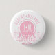 An elegant pink vintage floral swirl on a white background and customizable text for a wedding coaster.