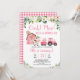 Pink Floral And Barn Farm Animals Birthday Invitation