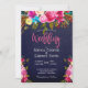 Vibrant Sring Pink Watercolor Floral | Typography Wedding Invitation. Bohemian hot pink, deep pink, yellow, light blue, purple watercolor painted roses, botanical floral arrangement wedding design with green leaves and feathers on navy blue chalkboard. Feature an elegant handwritten typography design the bride and groom's name. Perfect choise for spring and summer weddings. #3338blue If you need any help or matching items, please write to me.