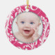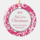 The text and photo on this Baby's First Christmas ornament are easy to customize. The pink and white abstract floral design with the silver look frame makes this a pretty and elegant Baby's First Christmas ornament. Make sure to check out the back as well, as there you can customize it with your baby's name! To change the text and photo use the personalize options. For more extensive changes to the ornament, including changing the font, font size, font color, text placement, picture size and/or picture placement, use the customize it option.